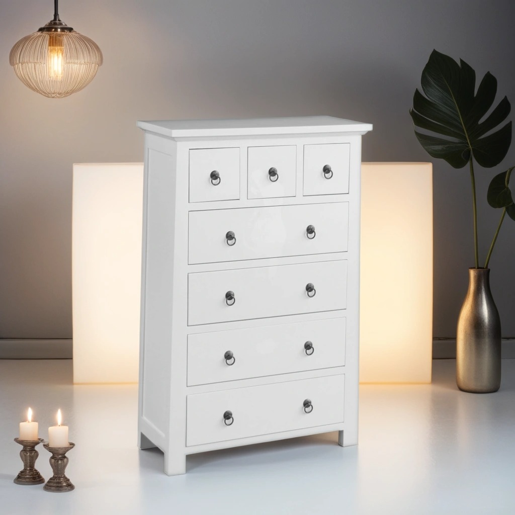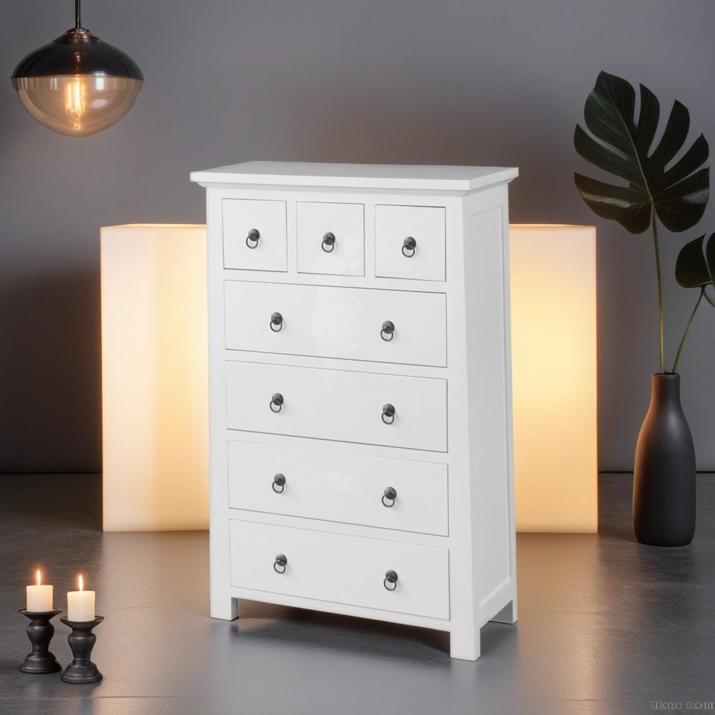 Grund Byrå i vitt med sju lådor.