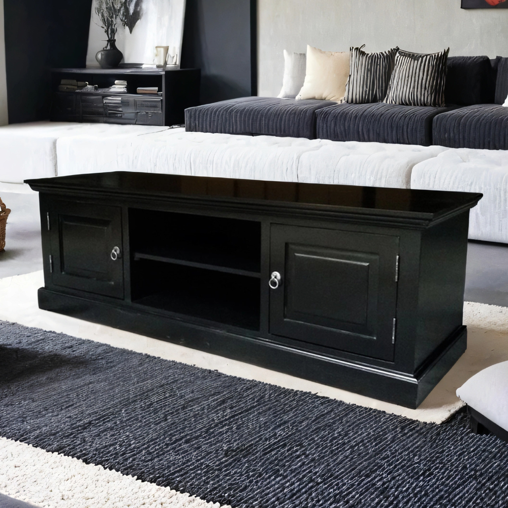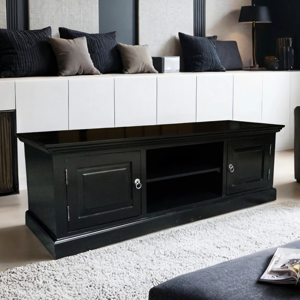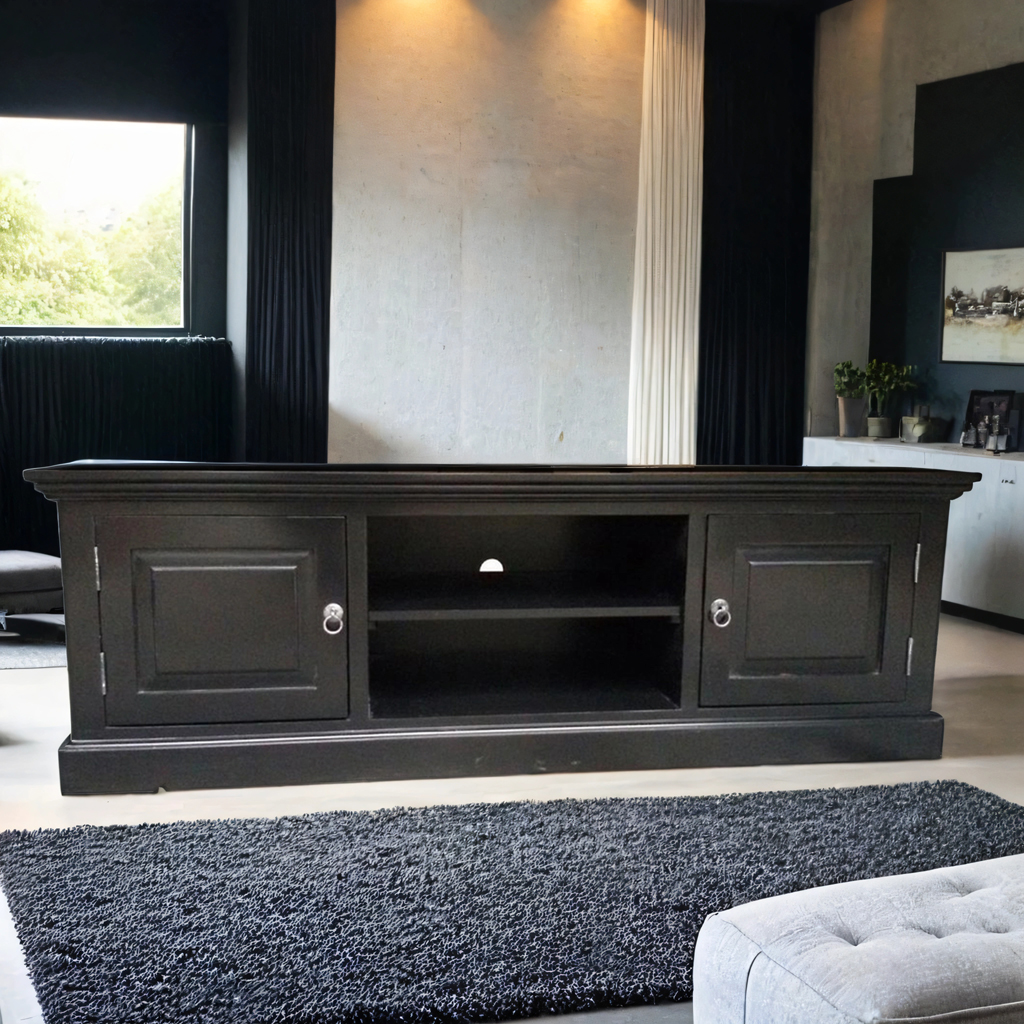 Tv-bänken Årskogen är 150x50x50cm stor och en av våra mest eftertraktade möbler. Med sitt traditionella svarta utseende kommer Årskogen att vara den perfekta tillägg till ditt vardagsrum.