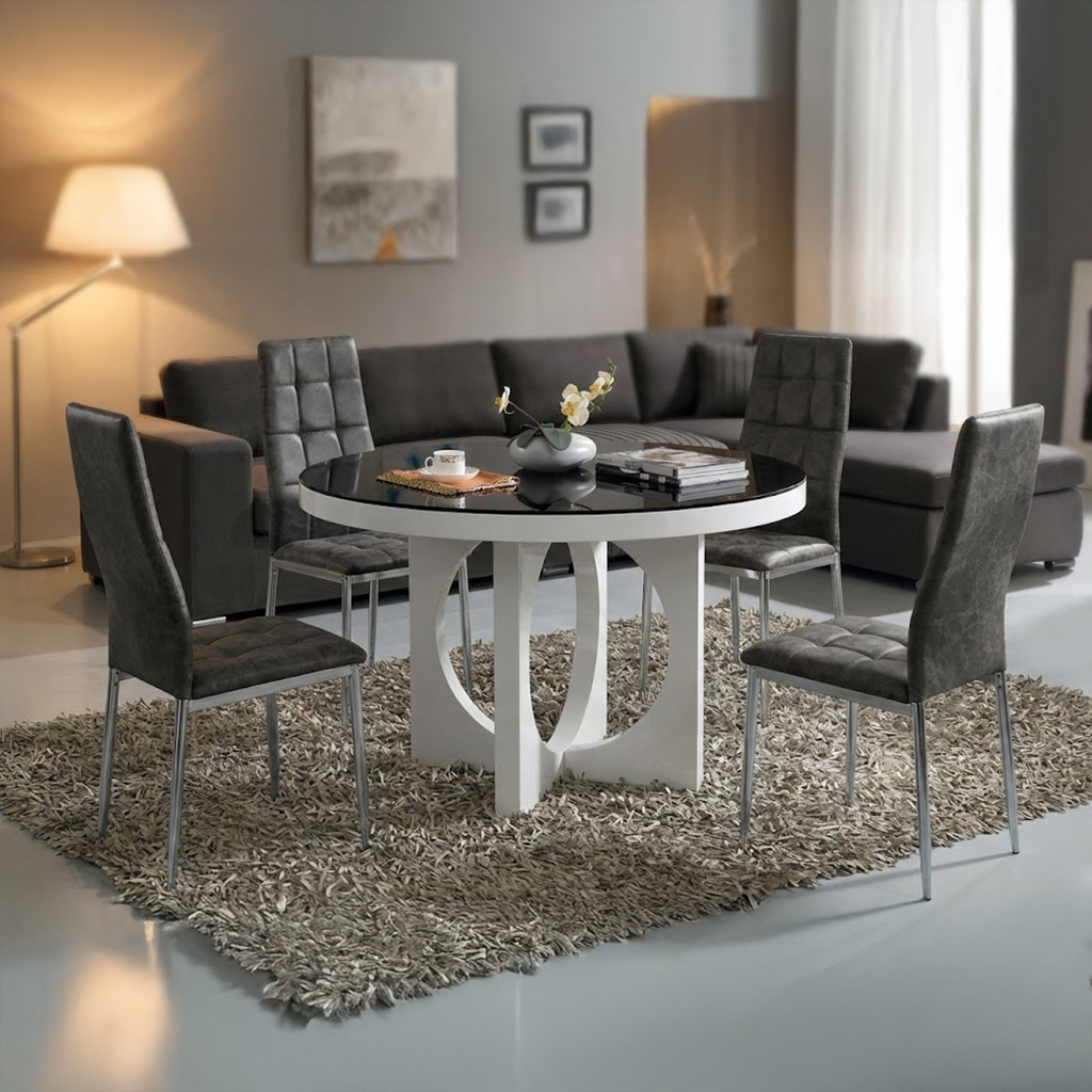 Det som gör Matbord Brandon så unikt är dess originella och genomtänkta design. Bordet har en högblank vit yta med en svart härdad glastopp, vilket ger en kontrastrik och elegant estetik som är karakteristisk för Eclipse-serien.
