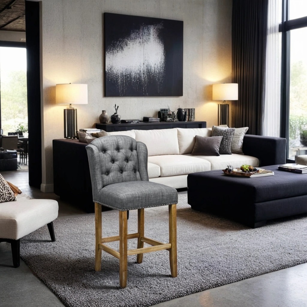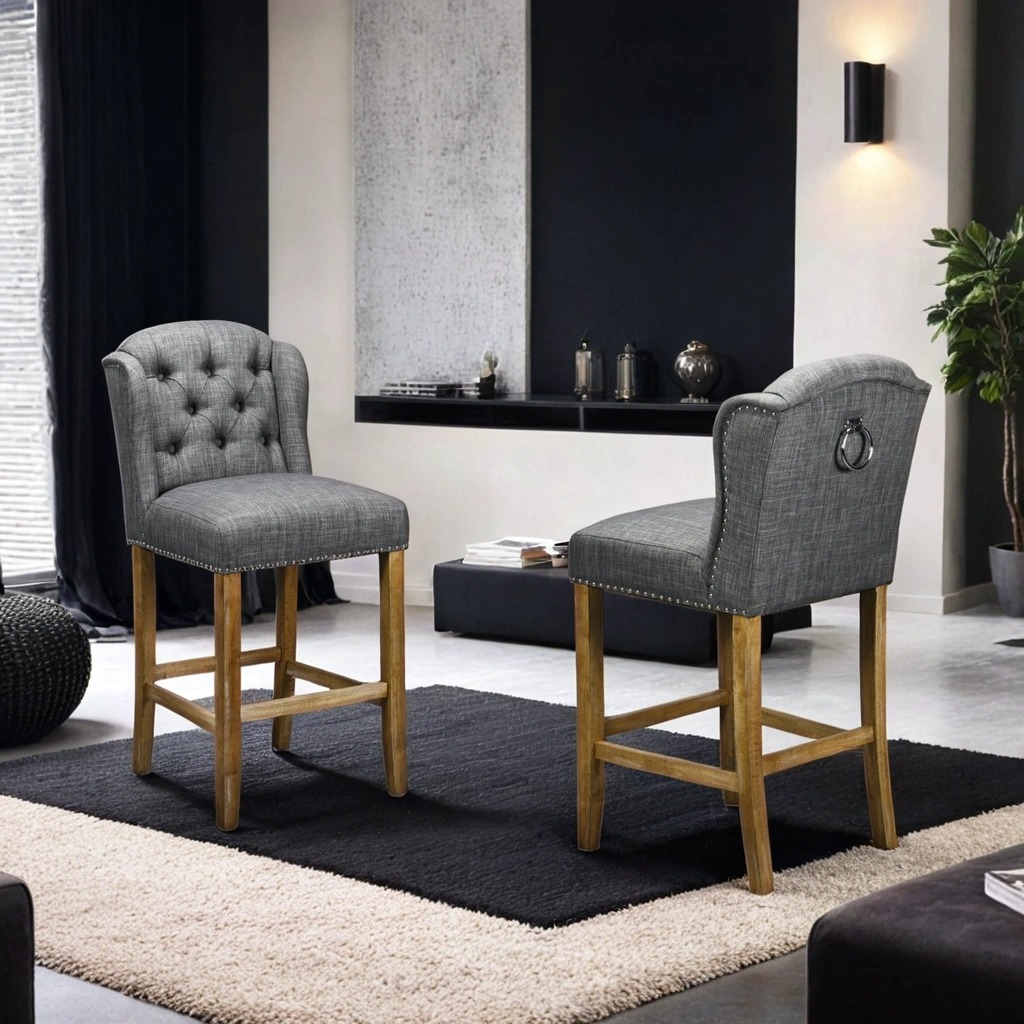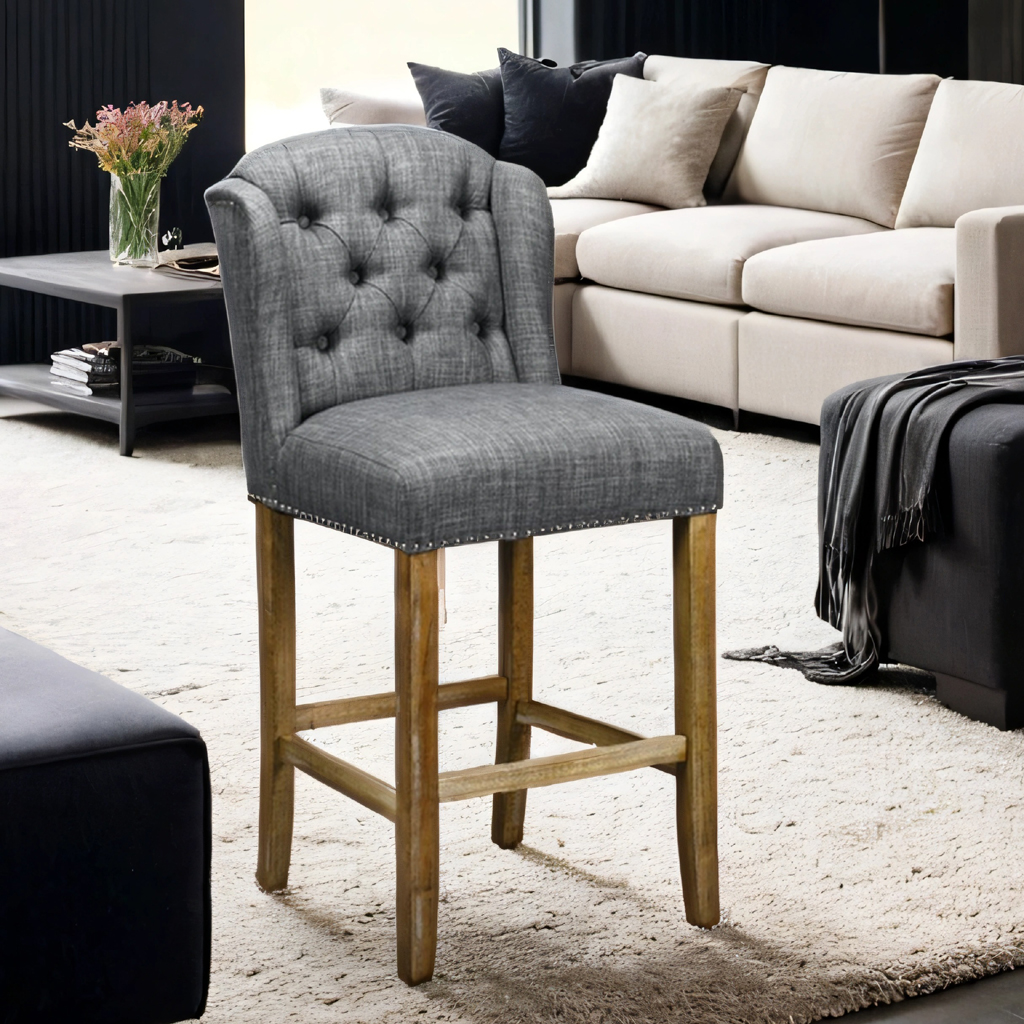 Låt barstolen Viktoria i svart/grå linnetyg bli kronan på verket i ditt hem och ge dina gäster en upplevelse av både stil och komfort!