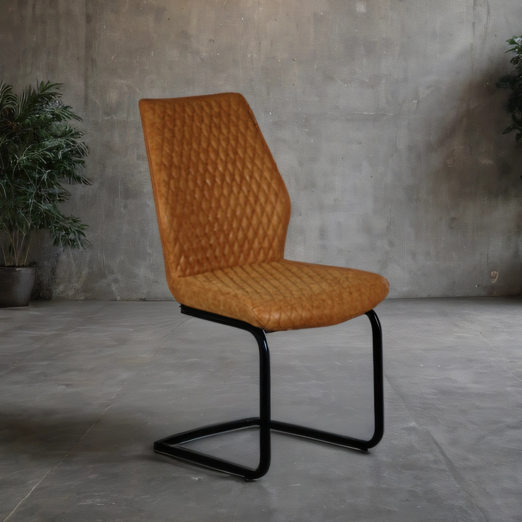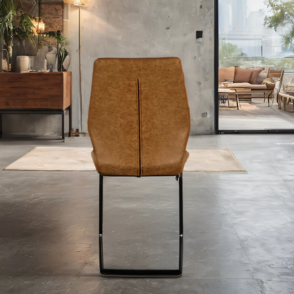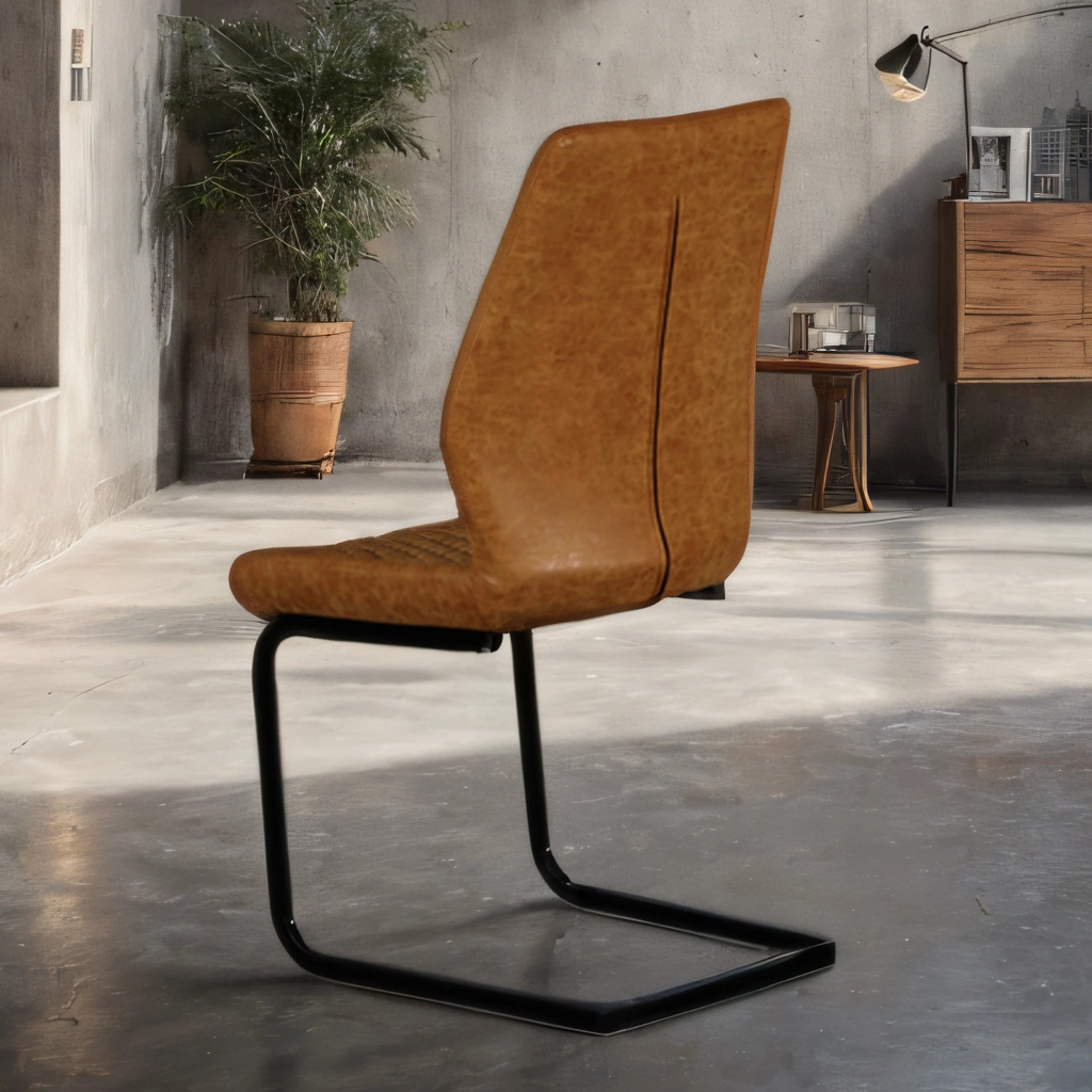 Mycket bekväm stol klädd i PU konstläder, dekorativa sömmar och svarta metallben. Konstläder är ett tåligt och slitstarkt material, lätt att torka av och hålla rent.