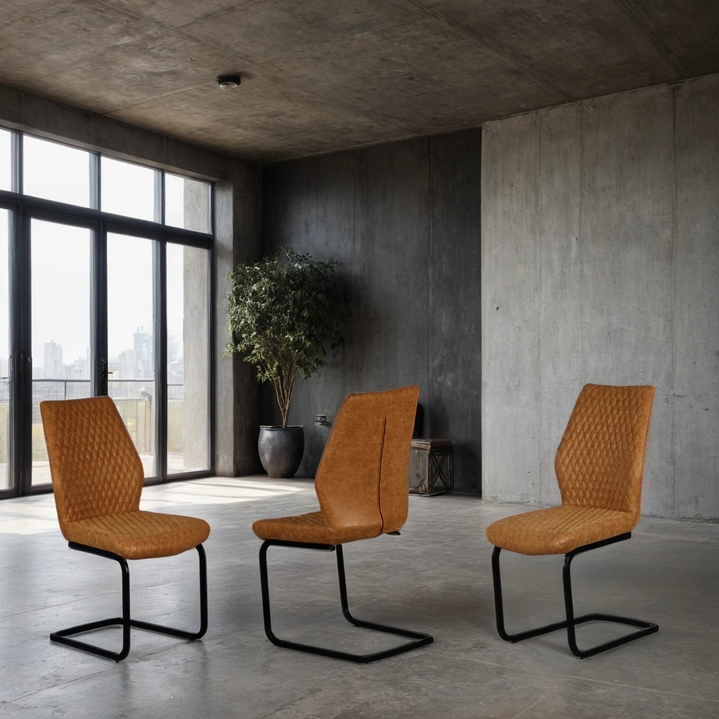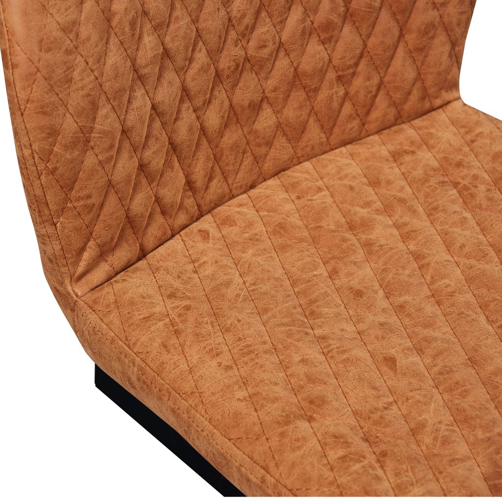 Stolens klädsel i slitstarkt PU konstläder är inte bara visuellt tilltalande utan även praktiskt. Detta tåliga material är enkelt att torka av och hålla rent. De dekorativa sömmarna längs stolens framsida och sitsen ger den en extra touch av elegans.