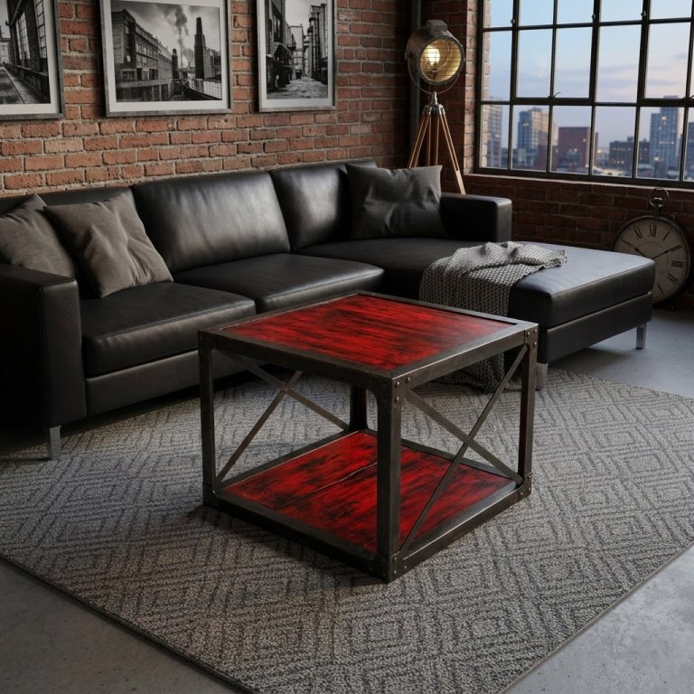 Nyhet - Industriella soffbord i röd-svart