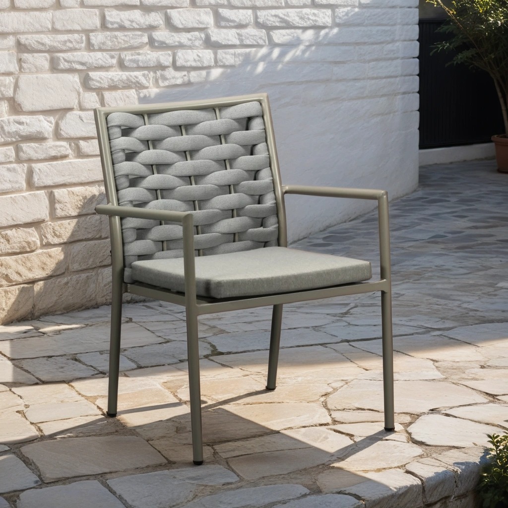 Upplev en kombination av komfort och elegant design med Gullholmen karmstol i grått. Denna stol är tillverkad i robust grålackerad aluminium och flätad polyrope, vilket ger både stabilitet och ett exklusivt uttryck. Den kraftiga ryggen med flätad polyrope är både bekväm och hållbar, UV-resistent och vattentålig – perfekt för alla väderförhållanden.