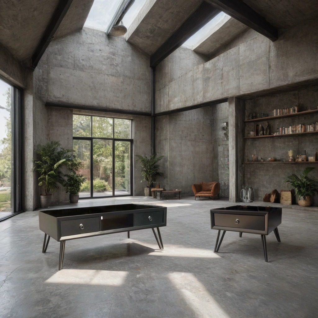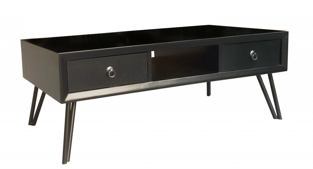 Soffbord svart med genomgående lådor, svartlackerade metallben