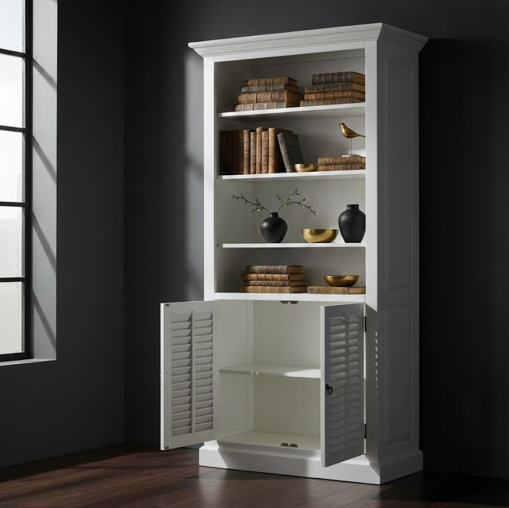 Bokhylla Seattle Vit är den perfekta möbeln för dig som älskar den kustinspirerade inredningsstilen. Med sina två eleganta jalusidörrar och tre flyttbara hyllplan ovanför, ger den dig gott om förvaringsutrymme för dina böcker och andra föremål.
