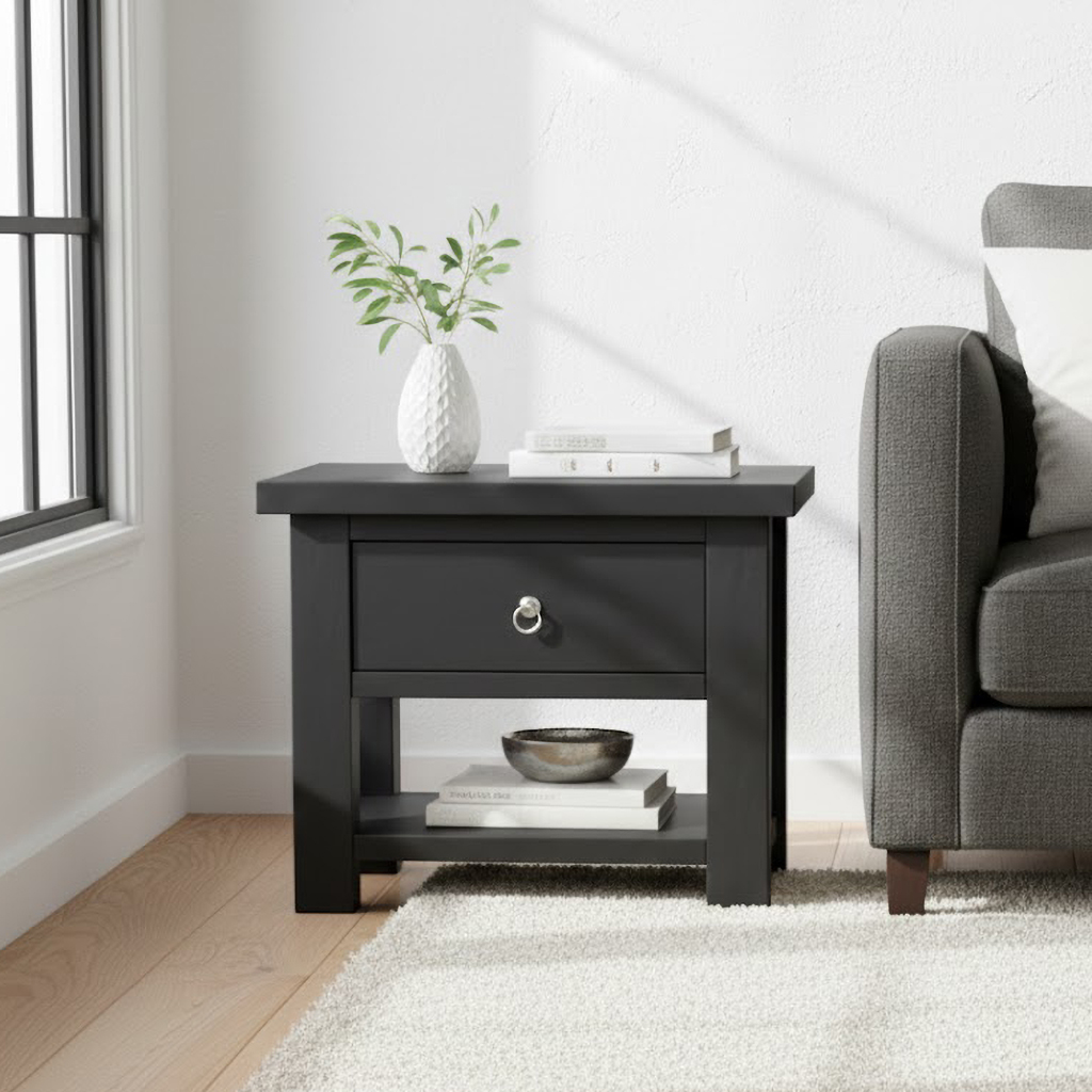 Tillverkat av högkvalitativt massivt pinjeträ och MDF, kombinerar Näsby Svart det naturliga och det moderna. Den djupa svarta färgen ger en touch av elegans och raffinement till ditt rum.